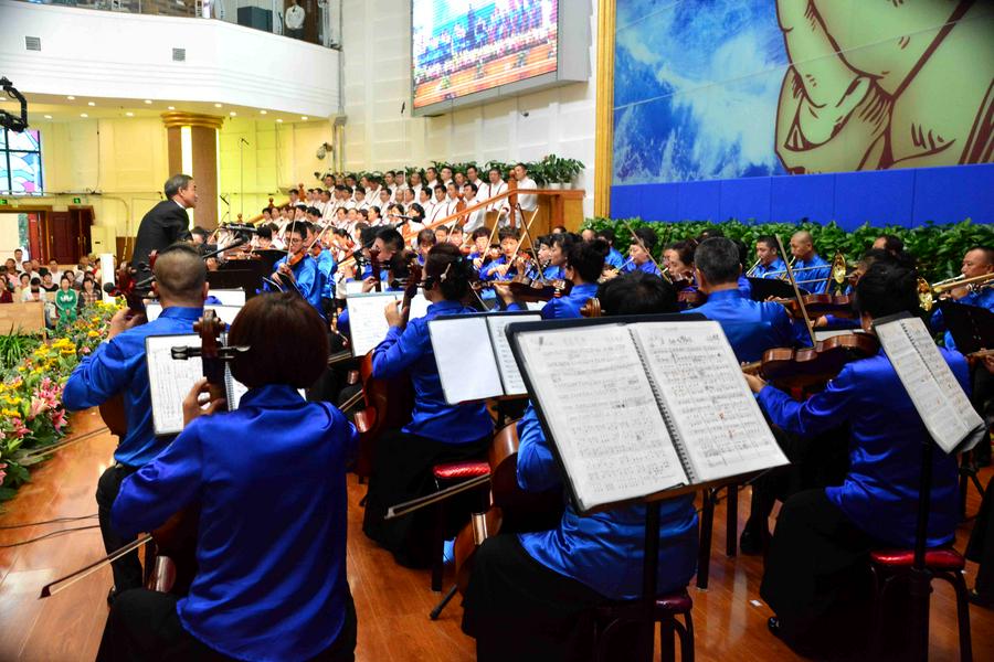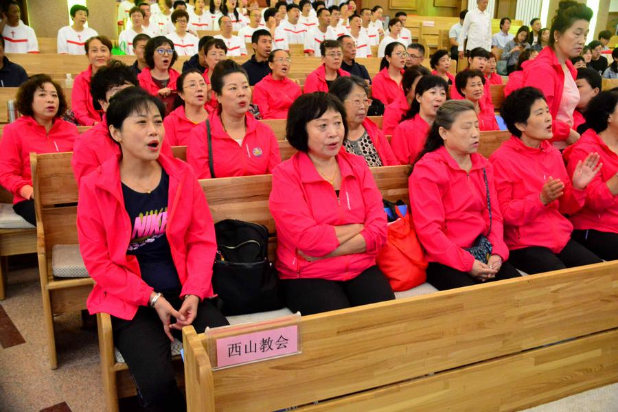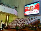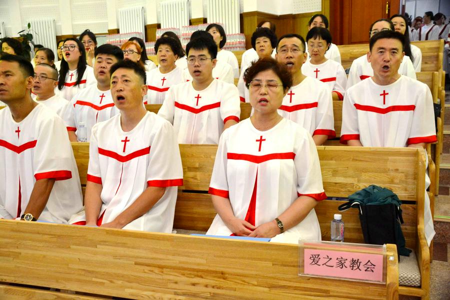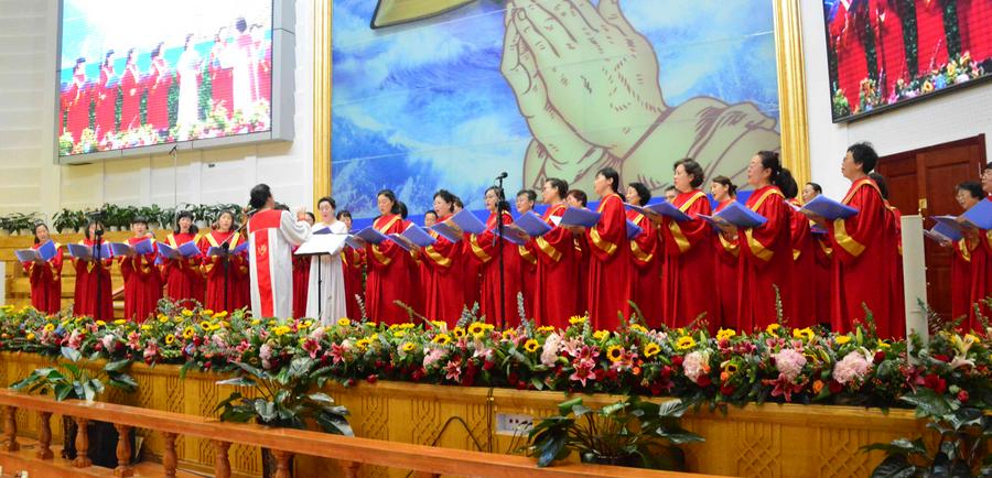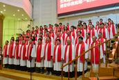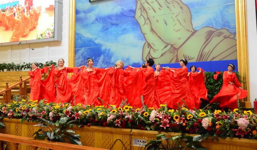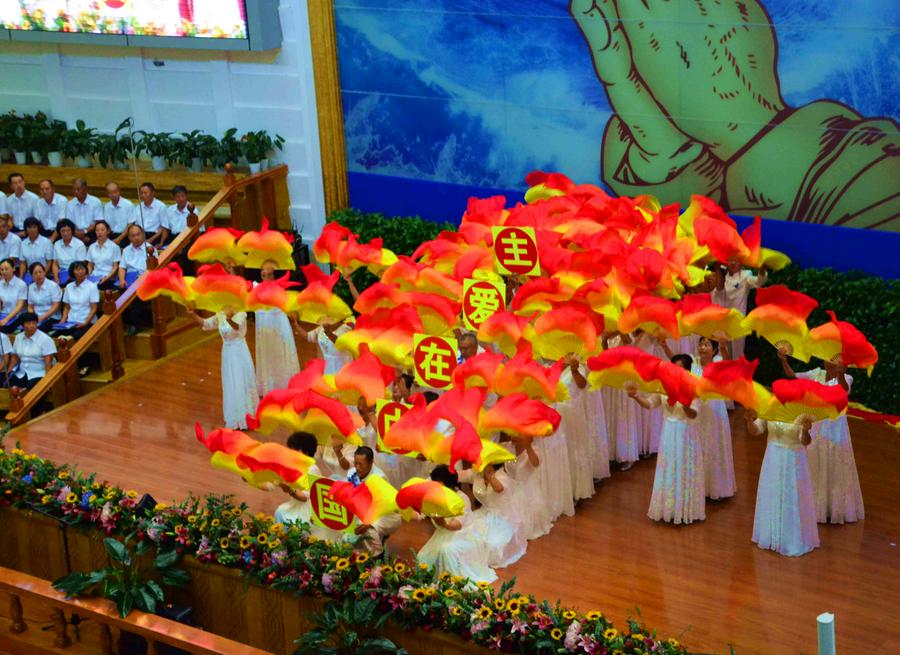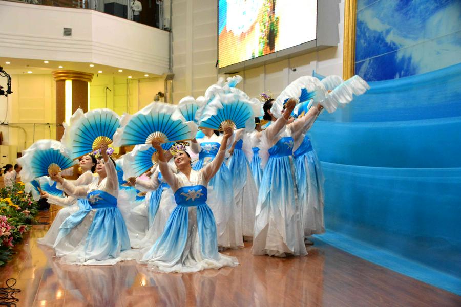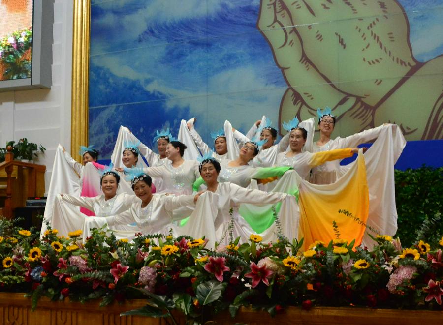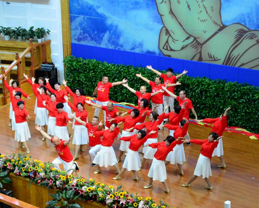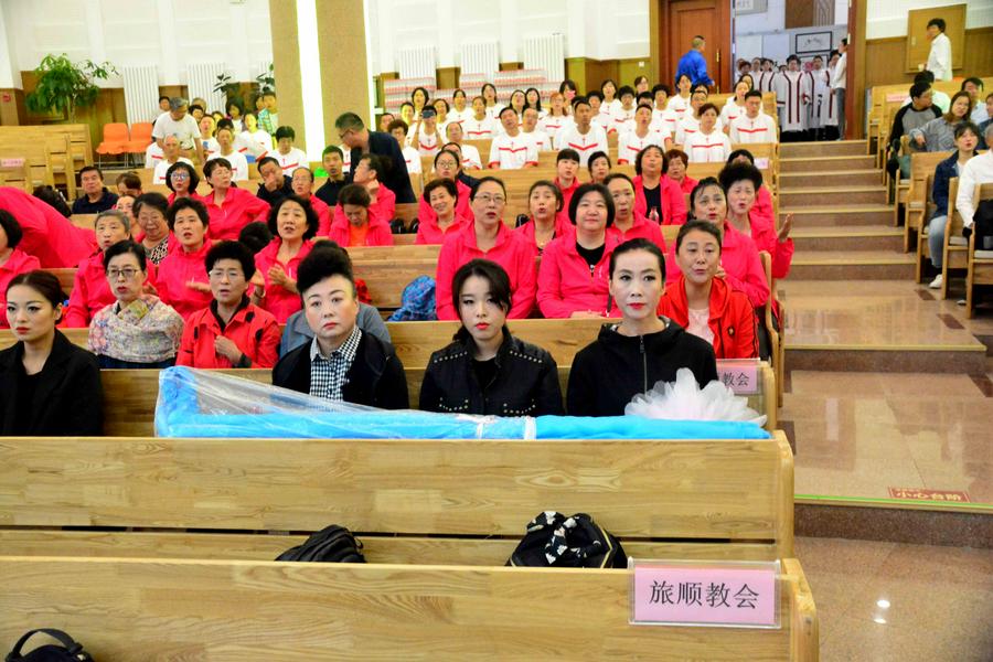 之后,大连市各教会的诗班、团契和弟兄姊妹把精心编排、精心组织、精心表演的管弦乐、舞蹈、合唱、独唱等艺术形式呈献给伟大的祖国、呈献给全能的三一真神。会场中《歌唱祖国》、《爱我中华》、《主爱在中国》《共和国之恋》等气势磅礴、振奋人心的爱国爱教的歌声、乐曲声嘹亮回响,经久不息的掌声此起彼伏,将荣耀归伟大的党、伟大的祖国和上帝。