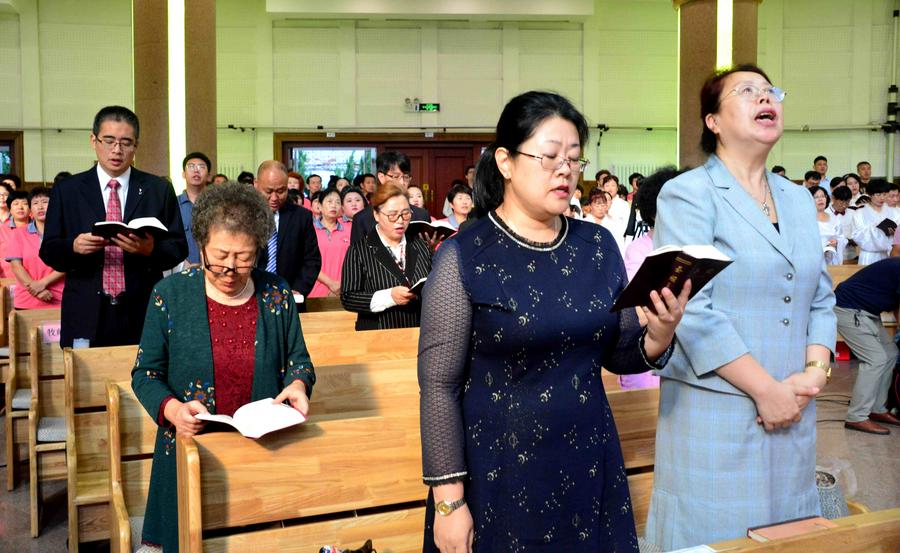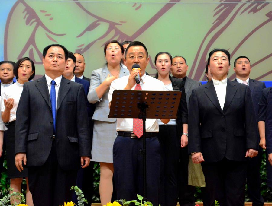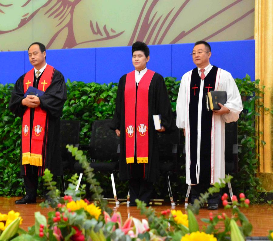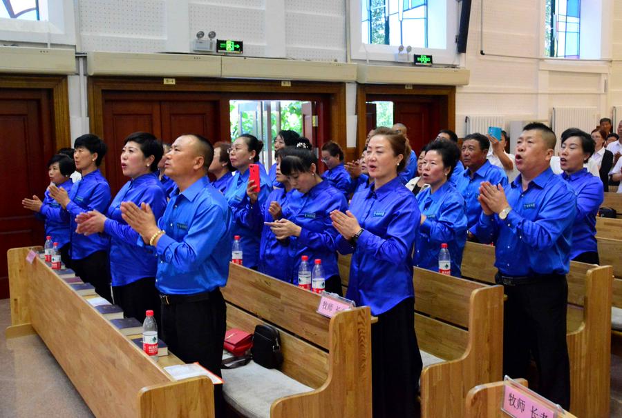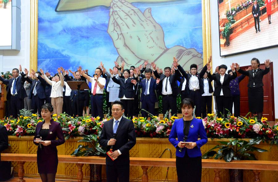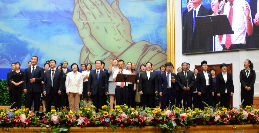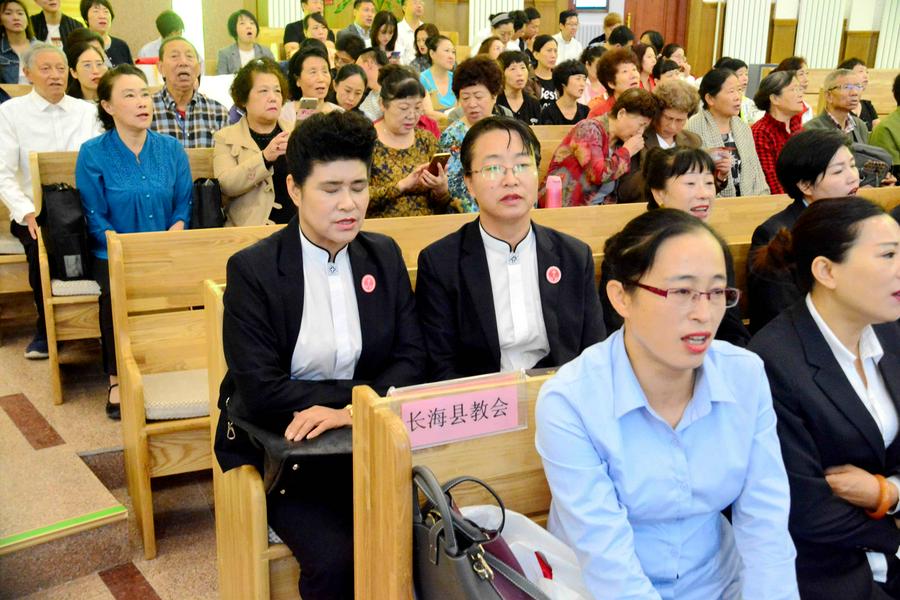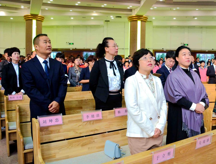 大连市基督教协会会长白振建牧师主礼司会;李绪清牧师、吴成图牧师带领会众高声诵读有关圣经圣训。