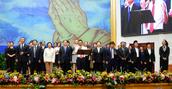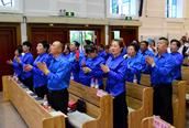 “我在大会中要称谢你!在众民中要赞美你。”(诗篇 35:18 ) 赞美会在赵永刚主席带领大连市基督教全体与会的牧师、长老走上圣台共同合唱《亲爱主耶稣》、《荣耀归神》等八首赞美诗中达到高潮,全场会众同声高歌,圣灵充满、激情燃烧,赞美会华美落下帷幕。