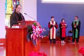 赞美会由赵乾坤教士主礼。教会身着圣服的牧师、教士庄严的侍立在圣坛一侧。本堂李申申牧师和郑琴子牧师分别诵读有关圣经圣训;大连市基督教三自爱国运动委员会副主席、本堂吴兵主任牧师为主证道。