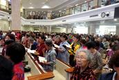 上午七点多,西山堂就坐满了前来聚会的信徒。赞美会开始之前围绕爱国爱教主题进行了讲道、祷告和歌唱祝福祖国、祝福教会的诗歌。八点,在圣诗班的圣乐敬拜中,赞美会开始。