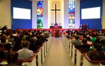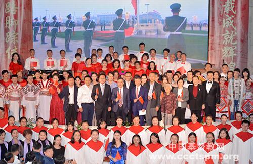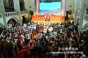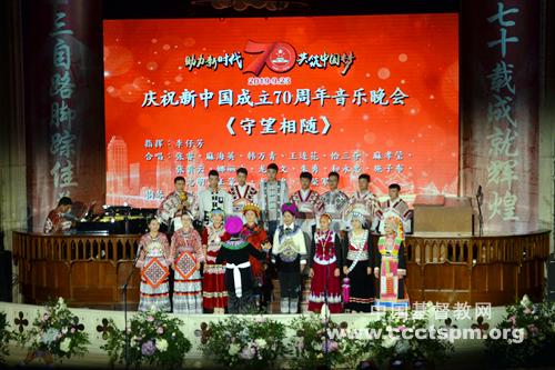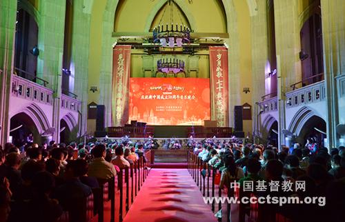 2019年9月23日,基督教全国两会主办、上海市基督教两会承办的“助力新时代 共筑中国梦”——庆祝中华人民共和国成立70周年音乐晚会在上海沐恩堂拉开帷幕。上海市民族和宗教事务局相关领导、第五届中国基督教协会会长曹圣洁牧师、中国基督教三自爱国运动委员会主席徐晓鸿牧师、中国基督教协会会长吴巍牧师、上海市基督教三自爱国运动委员会主席徐玉兰牧师、上海市基督教教务委员会主席耿卫忠牧师及参加基督教全国两会本届常务委员会第二次(联席)会议的常委出席观看晚会。来自上海各地的弟兄姊妹将近700人共享音乐晚会。