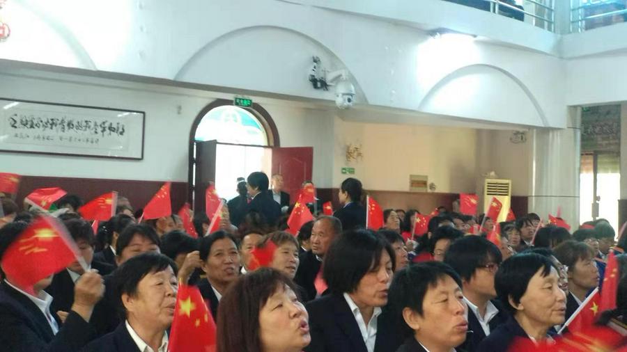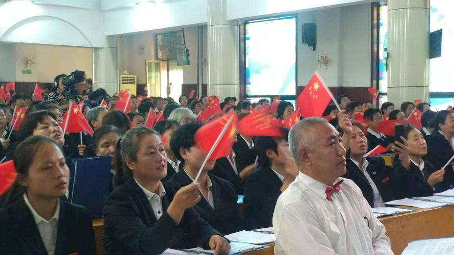 9月28日上午,位于繁华市区临汾市尧都区基督教堂洋溢着一派欢乐喜庆的节日气氛,鼓乐阵阵,歌声嘹亮。区基督教会在此隆重举行庆祝中华人民共和国成立七十周年“为国祈福”赞美祈祷崇拜,来自全区七个牧区及城区近千余名信徒欢聚一堂,共同挥舞小国旗,引吭高歌,歌唱赞美伟大祖国,为人民幸福安康祈祷,祝祷祖国繁荣昌盛,世界和平。市委统战部副部长、市民宗局局长郭琰、市委统战部、宗教科科长史京、区委统战部常务副区长、区民宗局局长刘玉江、副局长张建辉出席。