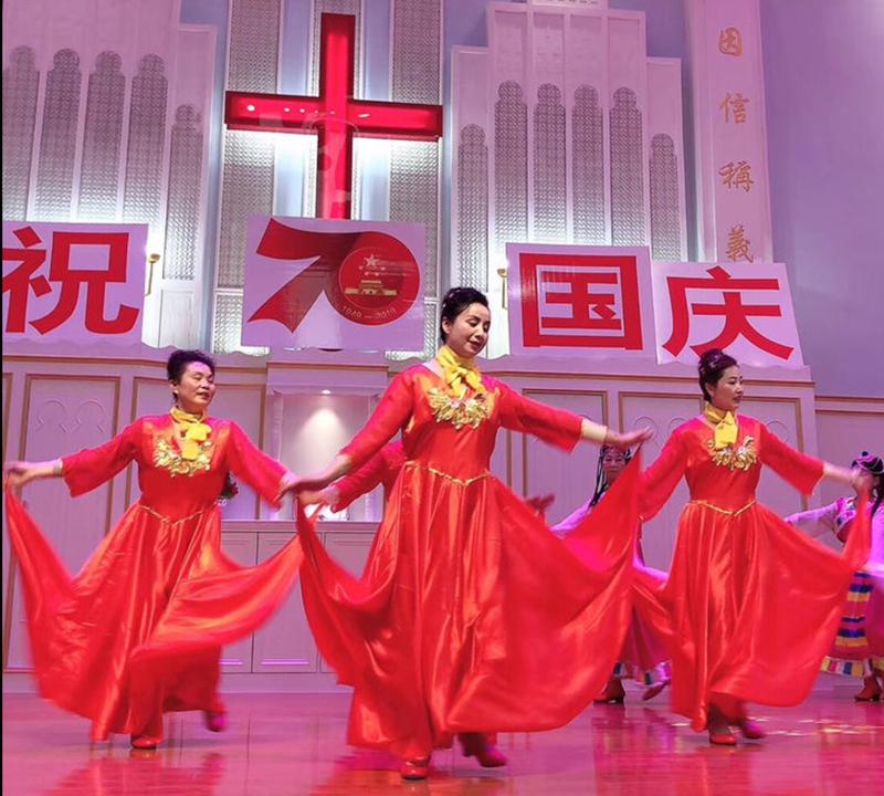 台上载歌载舞、歌唱祖国,赞美新中国70年来的辉煌成就;台下会众喜笑颜开、拍手点赞,表达着爱国爱教的情感和对美好未来的期盼!是啊,今天大家欢聚一堂、同歌共舞。如同喜获丰收的石榴籽一样,紧紧的拥抱在一起。以爱为圆心,画出了今天最美基督教中国化的靓丽图案!