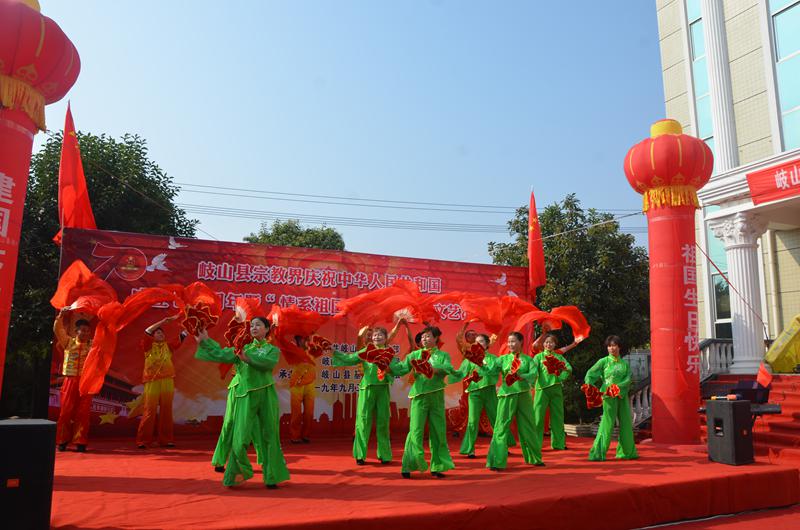 接下来,开始了益店、青化、蔡家坡教会及岐山基督教会的文艺节目汇演。他们在节目主持人优美主持词指引下,依次有序登台表演了《中国大有希望》、《中国心》、《祝福中华》等八个文艺节目。演出的节目个个精彩、内容场场丰富。尤其值得一提的是县基督教会演出的《爱的助骨》夫妻舞,看的人们热血沸腾、掌声不断。舞台上的十二对中老年夫妻,用歌声回忆与共和国同步走过的艰难路程,用肢体动作展示在主爱里灵命新生的凯歌。