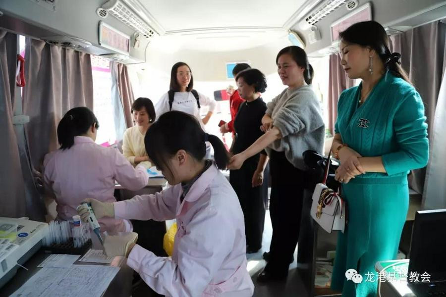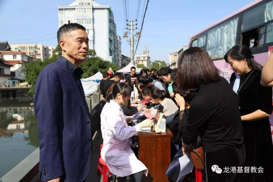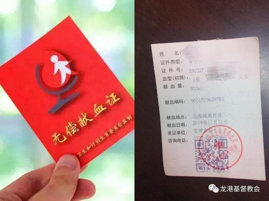 接苍南县血站血源告急的通知,浙江龙港教会遵照圣经“众人以为美的事,要留心去做”的教导,于2019年11月10日(礼拜天)组织无偿献血活动。礼拜结束后,自愿报名献血的50名青中年弟兄姊妹,在县基督教两会主席、龙港牧区组长杨介化长老的带领下,前往采血点进行献血前的检查并进行抽血200-400毫升不等,为缓解苍南血站血源紧缺献出一份的贡献。