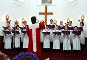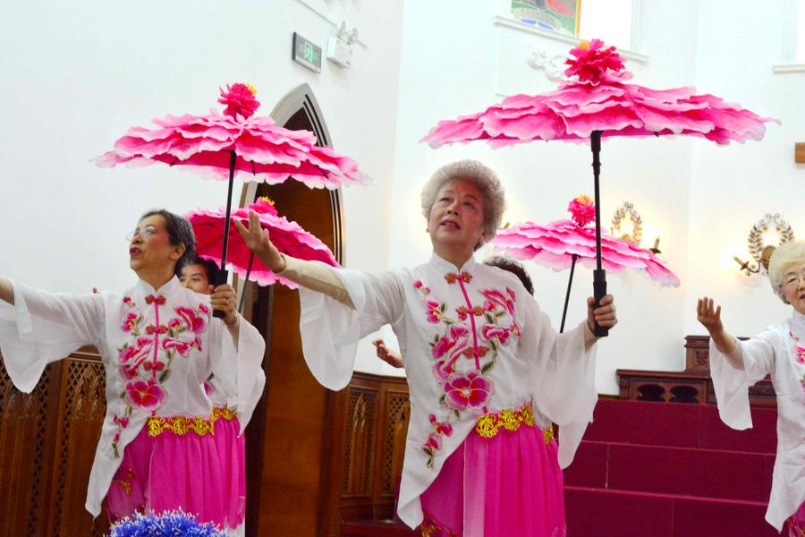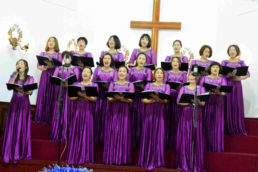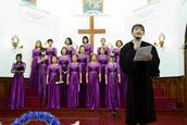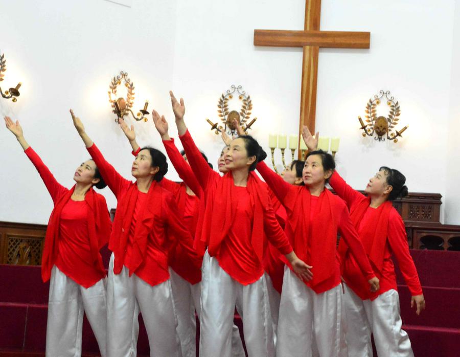 黄冠牧师证道结束后,教会的阳光小组、祷告小组、常青小组、追思诗班用虔诚、敬畏、赞美的心,把精心预备的《四季感恩歌》、《思念主恩》》等歌曲、舞蹈文娱节目献给神。