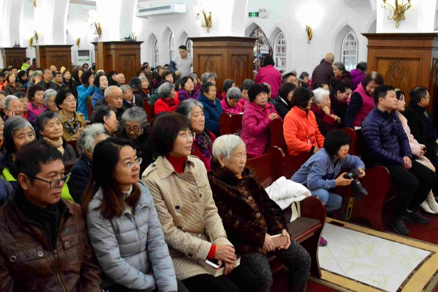 感恩节的玉光堂,教会的教士、执事和服务组的同工们侍立在教堂的门前,笑容可掬的早早就迎来了前来欢庆节日的弟兄姊妹,主堂副堂座无虚席、充满喜乐。在教会教士的带领下,大家齐声读经祷告、敬拜赞美,将感恩的祭、感恩的心、感恩的情献给三一荣耀的神。