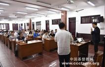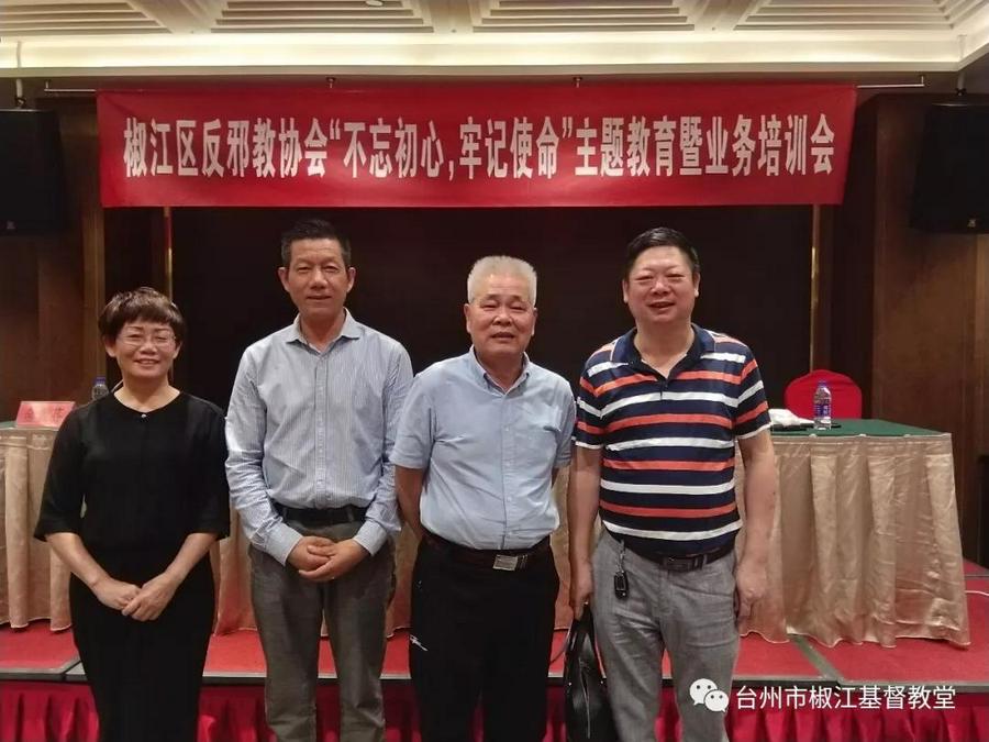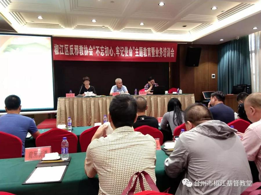 于百友讲,我区为了做好反邪教工作,领导重视,协会重视,大家重视,前期反邪教宣传工作做出大有卓有成效,要再接再励。不忘初心,牢记使命主题教育。通过上课培训,大家进一认识到反邪意识、责任意识,社会意识,敢于担当使命。要建立好反邪教组织,搞好反邪教工作,做好反邪教宣传,确保椒江区的社会稳定,政治、经济稳定。264个村、街道支会、分会,抓好要建立反邪教队伍,抓好完成反邪教负责制,抓好做好反邪教工作台帐,主动掌握反邪教信息,抓好树立点型,以点带面。抓出亮点,补足短板,谱写好反邪教椒江经验。于百友讲到宗教反邪工作,多次点名表扬了椒江基督教堂反邪教教育警示基地工作显著。
