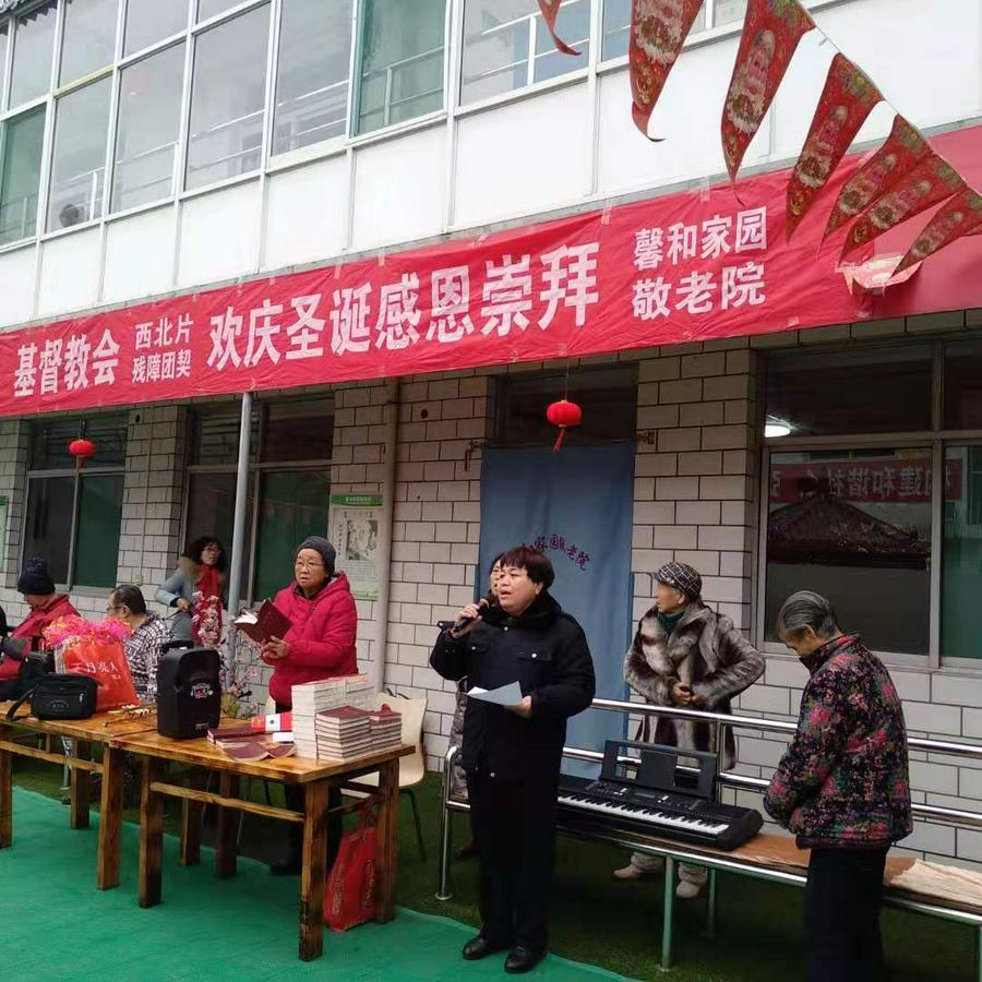 2019年12月16日上午,天色阴沉,寒气袭人,位于山西临汾市尧都区河西马务村的馨和家园敬老院却热闹非凡,洋溢着一派欢乐喜庆的气氛。一条条圣诞彩条迎风飘扬,写着圣经话语的五彩标语光彩夺目。乐曲悠扬,歌声阵阵,老人们展露出舒心的笑容。这是山西临汾市尧都区基督教会残障团契、长者常青团契携手西北片在这里举办每年一度欢庆圣诞感恩崇拜时的一幕。