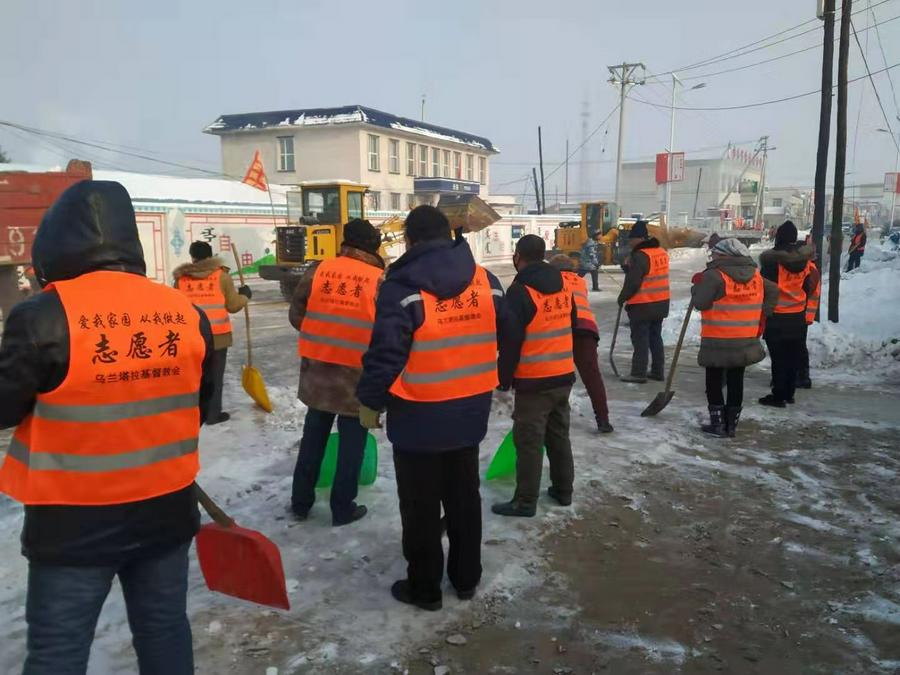 2019年12月15日,吉林省松原地区普降暴雪,大雪下了一天一夜,给行人和车辆带来极大的安全隐患。乌兰塔拉基督教会负责人田野弟兄与同工商量后,决定组织信徒上街清理路面积雪。