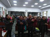 上午9:00,圣诞节第一天聚会,在会众齐祷和主持人陈伟教师代祷后开始了。首先上台的是福临堡教会老年诗班的献唱赞美。二十多位六、七十岁的老人们,身着白色圣衣,依次慢慢走上台子,在钢琴伴奏下,欢快、喜乐的献唱了赞美诗《来庆贺圣诞》、《新生王歌》。别看她们一个个白发苍苍,可唱起赞美诗歌,那声音,那架势真不亚于年轻姊妹。献唱完毕,大家给于了热烈的掌声!