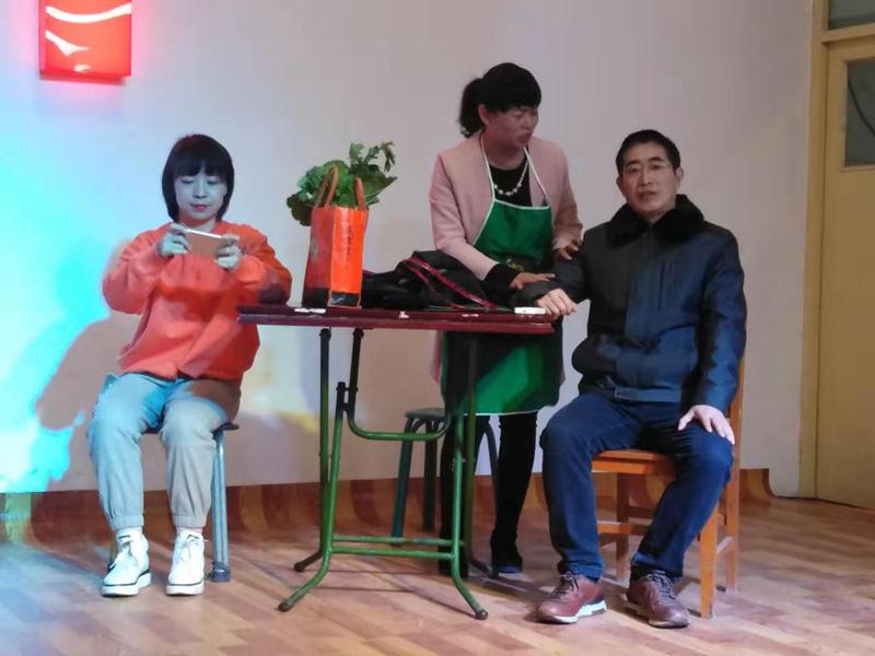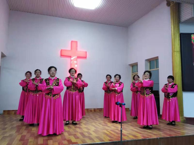 下午13:30,开始了他们的圣诞节崇拜赞美。节目形式多样,内容丰富多彩。十三个文艺节目在王云英姊妹独特风格的主持下有序登台演出。有老年诗班的两个快板,有刘淑兰、杜玲两位姊妹分别领队的两个小品;还有董全爱、陈宝芬、姊妹带队及紫塬小组姊妹们配合演出的九个舞蹈节目。尤其值得一提的是《两个家庭》小品节目,内函深刻、喻义悠远。一个家庭信主、靠主,另外一个家庭只有母亲信主,女儿、丈夫不信主。当洪水来临后,信主的一家三口全部得救;而另外一个家庭只有信主的母亲得救,没有信主的女儿、丈夫被洪水卷走,家破人亡。