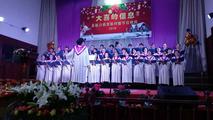 全市联合乐队奏乐《太初颂》、《以马内利来临歌》、《圣诞佳日扎起松柏》等,弟兄姐妹以舞蹈、圣剧、快板、情景剧、手语律动、小合唱、乐器合奏等不同形式表达赞美感恩、献上礼物,程聪智教师劝勉;最后是百人大合唱《宁静的伯利恒》、《道成肉身》、《哈利路亚》,乐曲神圣庄严,会众无不感动。最后由王春花牧师祝福祷告。