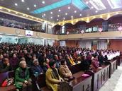 下午13:00,开始了曙光堂的例行赞美活动。只见19位身着紫衣的姊妹弟兄,走上台前依次依阶站成三排。在白姊妹一边自弹面前电子琴伴奏下,一边带领团队挥动手臂、喜乐连唱起《圣诞佳日扎起松柏》歌。那优美的旋律,那一声声“法啦啦啦……”感染的大家齐齐站了起来,模仿着台前他们赞美队的动作,跟着挥动手臂、激情放歌“圣诞佳日扎起松柏,法啦啦……欢乐节期已经到来!”整个主堂成了欢腾、赞美的海洋!