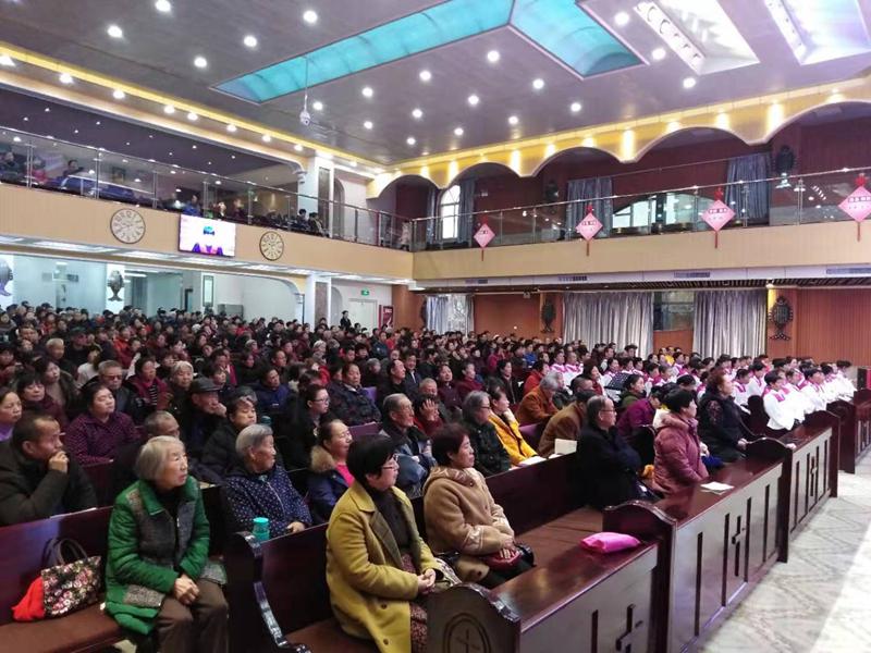 赞美歌声不间断,欢庆舞姿数主恩。这是2019年中华大地各家教会欢庆圣诞节的真实写照,也是宝鸡曙光教会连续两天庆祝圣诞节聚会的现实反映。笔者参加了宝鸡曙光教会第二天的圣诞节聚会,与弟兄姊妹们共济一堂、引吭高歌赞美,满心欢喜地共庆圣诞佳节,感恩神对曙光教会的带领和眷顾,共享属灵的爱餐“盛宴”!胜利路、福临堡、十里铺三个教会诗班带着节目也应邀参加了庆祝圣诞崇拜聚会。