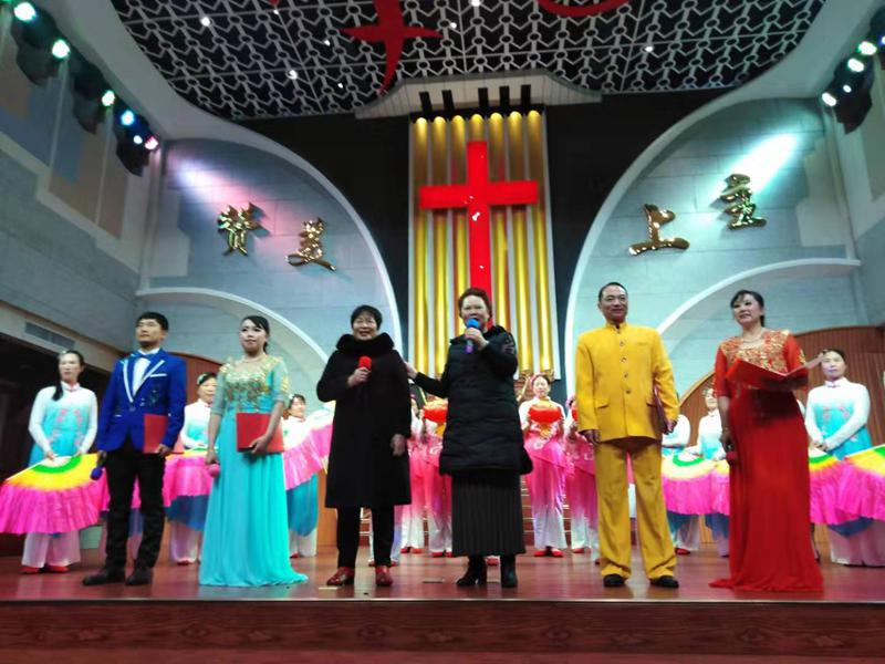 下午13:30在胜利路、福临堡两个教会的诗班分别献唱后,开始了他们两个教会的文艺节目演出。首先是胜利路两个节目的演出,接着是福临堡教会10个节目的依次登台演出。看啊,靓丽舞姿在展现姊妹们舞蹈艺术的魅力;听,嘹亮歌喉在抒发姊妹们爱主的深厚情感。精彩节目个个使人陶醉,音乐旋律曲曲使人喜乐欢笑!他们一场场精彩节目的演出,也一波波赢来了会众的热烈掌声!16:00,在易莲梅长老祷告祝福中演出结束。因为晚上还有活动,人们大多都没有离开,而是期盼再欣赏曙光堂更为精彩的晚上圣诞夜烛光晚会。