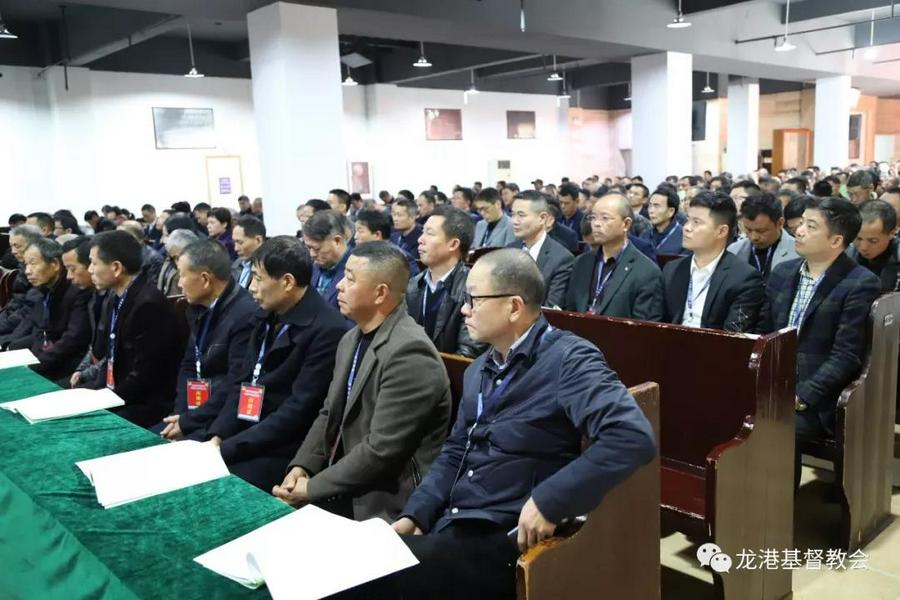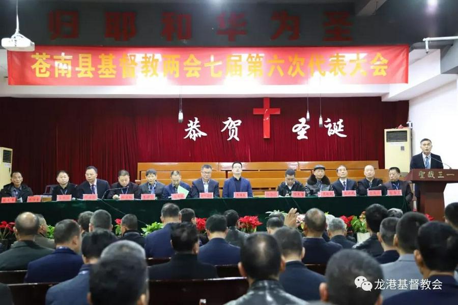 温州苍南县基督教两会七届第六次代表大会,于2020年1月7日在龙港主恩堂隆重召开,时间半天,来自全县教会341位代表和63位特邀列席代表,肩负着神赋予的伟大使命和全县10万信徒的重托参加了大会。
