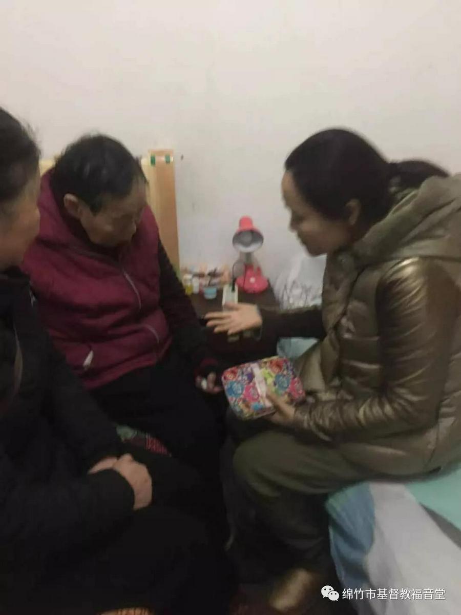 四川绵竹教会践行主耶稣“服侍人”的教导,进入人群、进入家庭,给长者们送“芝麻糊、麦片、面条”等暖手礼,入户陪伴长者聊天,为长者剪脚趾甲、为长者洗头等, 在寒冬里,把主爱的温暖带给福音社区的长者们。