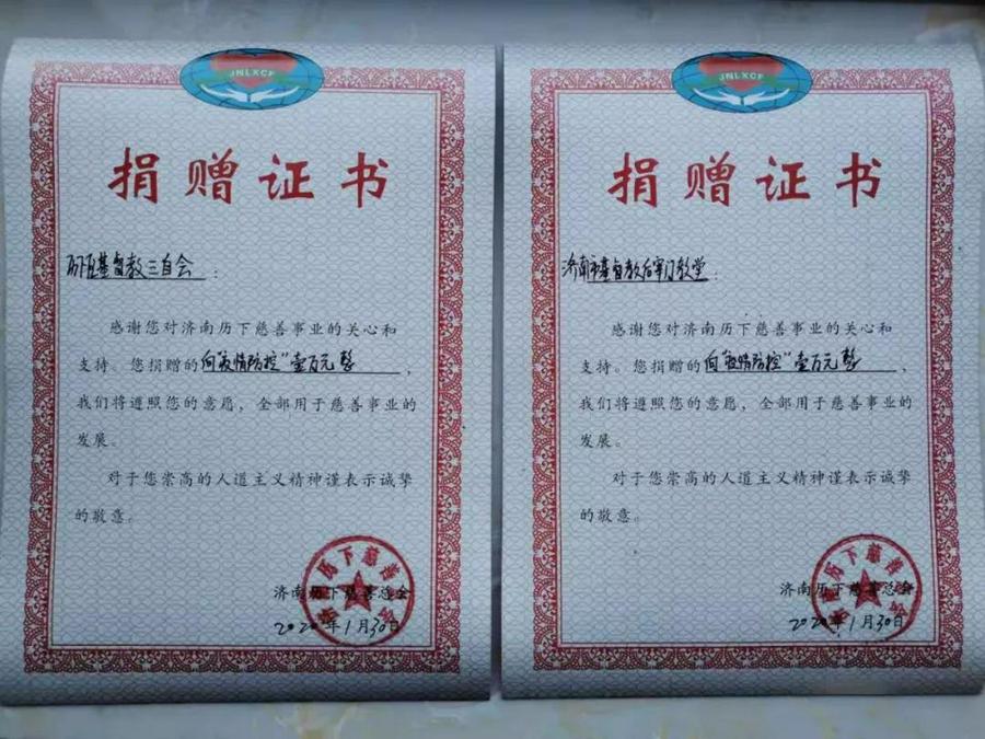 元月30日(正月初六)上午,山东济南历下区政协常委、区基督教三自爱国运动委员会主任、后宰门教堂主任牧师王文欢来到历下区慈善总会,代表区三自及后宰门堂为武汉疫区捐款20000元,以表达区广大信徒对疫区的关切。