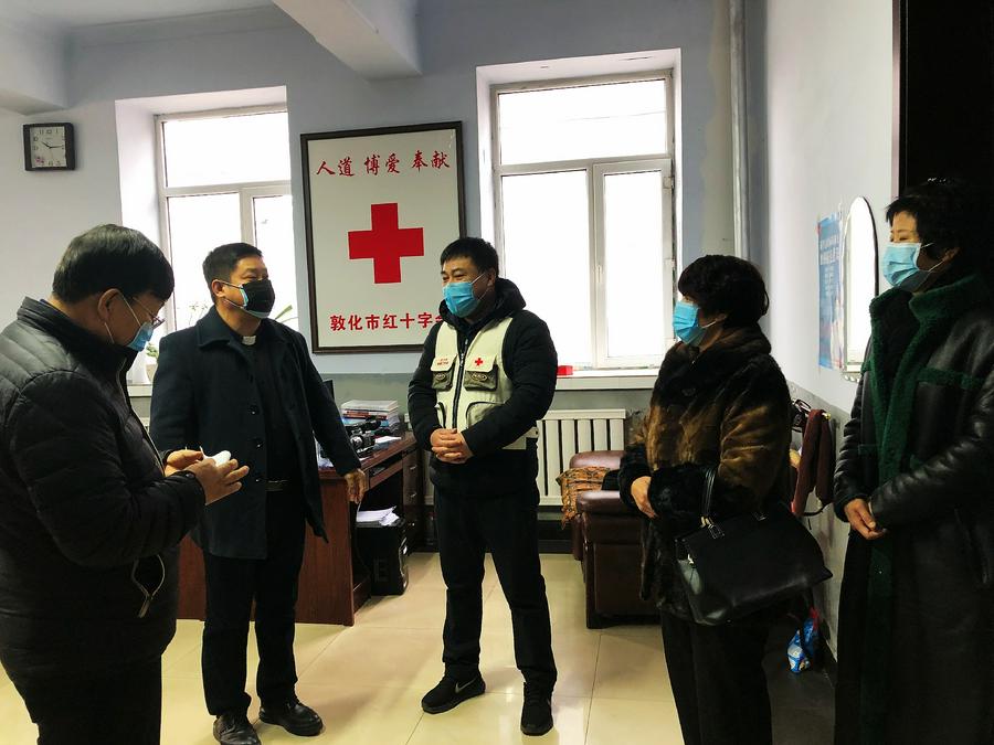2020年2月15日,吉林延边州敦化市基督教两会向敦化市红十字会捐赠疫情防控资金30万元,捐赠防疫物资“84消毒液”4吨,价值23200元。敦化市委统战部、市民宗局相关领导出席捐赠。