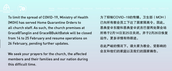 该堂官网也宣布,自2月12日起连续两周,停止所有的聚会活动,预计关闭至2月25日,2月29日重启聚会。