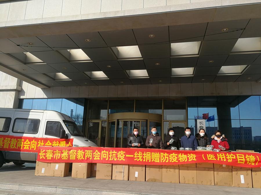 2月25日下午,长春市基督教两会向长春市卫健委捐赠5000副医用护目镜,价值29万元。