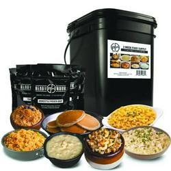 这些食物包的价格从几百美元到几千美元不等。食物装在一个黑色的塑料桶里,里面按照不同的食材分为一个个黑色密封袋,商家的描述显示这些食物的保质期为25年,黑色密封袋一共四层,并且建议在断电、自然灾害、疫病流行期间食用。食物的内容包括奶酪通心粉、炒饭、薄煎饼、燕麦粥、土豆浓汤等。
