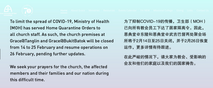 这个过程充满了煎熬,赵牧师本人自11起到国家传染病中心接受治疗,他的家人也被要求进行检测,教会所有同工接受居家隔离,教会也连续三周停止聚会,并对场地进行清洗和消毒。