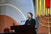 上午9:10,易莲梅长老开始了为时50分钟的证道。她以《圣经》经文:耶50:24;太24:12 ; 太24:37-39章节为依据,围绕《基督徒的不知不觉》主题,据章引典讲了三大部分。一、不知不觉就被网罗缠住了;二、不知不觉爱心就冷淡了;三、不知不觉主就来了。在这堂证道中,她告诫大家:时光在我们不知不觉中流失。许多事情在我们不知不觉中发生。生活中有太多的不知不觉。圣经告诉我们:不知不觉洪水来了,把他们全部冲去,人子降临也要这样。在证道结束时,易长老说:弟兄姊妹,当不知不觉之间,耶稣来接我们的时候,你预备好了吗?