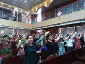 在接下来的时间,开始了易莲梅长老的一堂证道。她那一声“亲爱的弟兄姊妹,主内平安,复活节快乐!”的问候和道喜,仿佛是一抹阳光送走了七日受难周带给人们心头的沉重,也仿佛是一股清新春风,给大家带来了鸟语花香的欢喜、快乐!使大家似乎在一瞬间,脱去了旧我,穿上了新人。以崭新的心态,喜迎我主复活;以美妙的歌喉庆祝、赞美我主的果然复活!