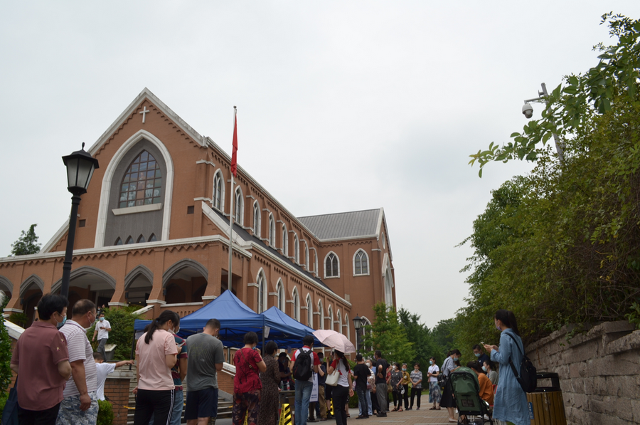 6月5日,独墅湖堂在园区民宗部门及疫情防控领导小组的督查验收通过;6月7日,该堂迎来了自1月24日起因新冠肺炎疫情关闭场所、暂停活动后的首次礼拜。当天,牧者、堂委执事及义工提前到教堂做好准备,信徒们根据公众号预约的场次按时到场,按照一米线距离等候排队,经过苏城码核对、测体温合格后有序入场、对号入座、参加聚会。