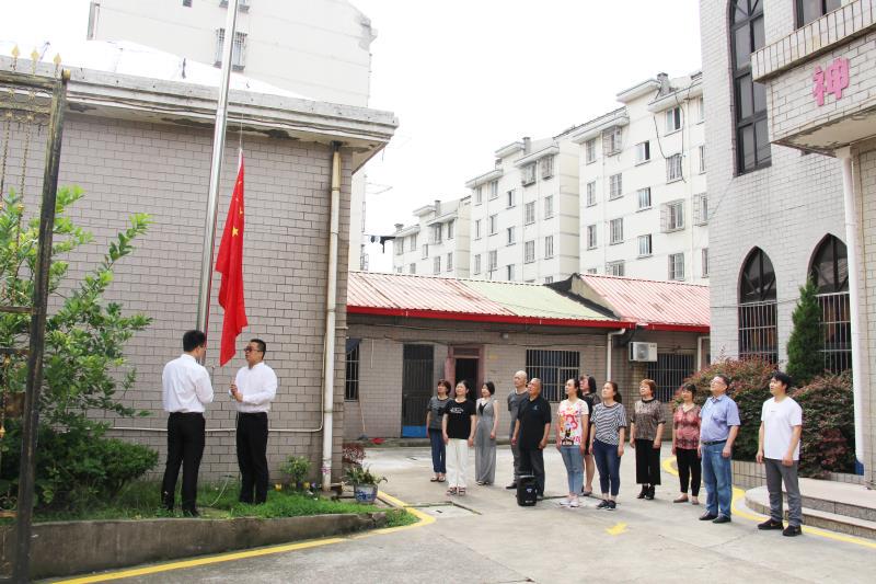 6月13日上午教牧人员及部分信徒一起举行了升旗仪式,喜迎恢复聚会。下午举行了全体接待组义工培训和模拟演习,保障6月14日的主日崇拜万无一失。
