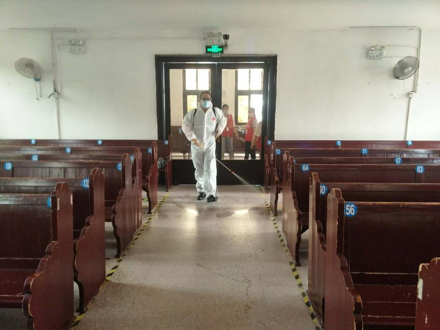 此次主日崇拜上午两堂由朱华牧师以《教会生活》为题证道,下午和晚上由丁彩萍牧师以《葡萄树上的枝子》为题证道。每场崇拜后还由专职消毒人员按规进行封闭式消毒。