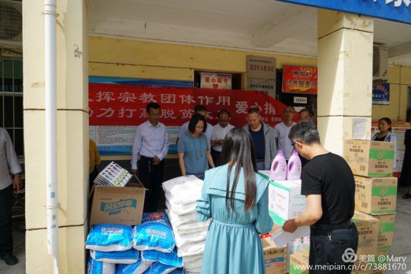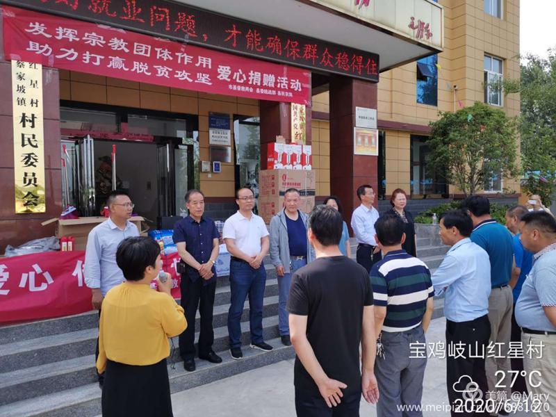 2020年6月12日这天下午,宝鸡市基督教三自爱国运动委员会主席张万宝教师、市基督教协会会长王琼牧师、市两会常务副主席、副会长易莲梅长老及市两会副主席、副会长张金会长老一行,肩负全市基督教界的助力脱贫攻坚重托责任,带着全市基督教界的爱心捐助物资,来到对口帮扶的岐山县蔡家坡镇红星村、曹家村,将贫困群众需用的生活日用品赠送给两个村的“爱心超市”,及时补足“爱心超市”的物资缺口。并当场举行了隆重的物资捐赠仪式,共计捐赠物资12000余元。岐山县县委统战部、县民宗局领导及蔡家坡镇领导参加了捐赠仪式活动。