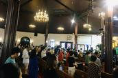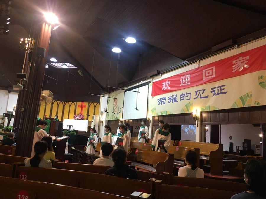 那时距离礼拜开始只有5分钟了,笔者找到座位,发现原本一长排能坐9个人的礼拜堂现在只能坐4个人。礼拜还是跟往常一样,宣读经文、唱诗、祷告、诗班献唱、证道。