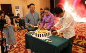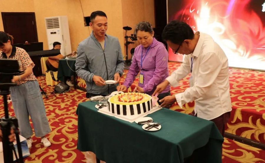 普牧师分享结束后,田老师为弟兄姐妹制造了“惊喜”:她先说是要“惩罚”三位弟兄姐妹,其实是一场对他们三个人的生日祝福活动。普牧师在台上为他们祝福祷告的时候也忍不住热泪盈眶,台下众弟兄姐妹也悄悄流下了感动的泪水……