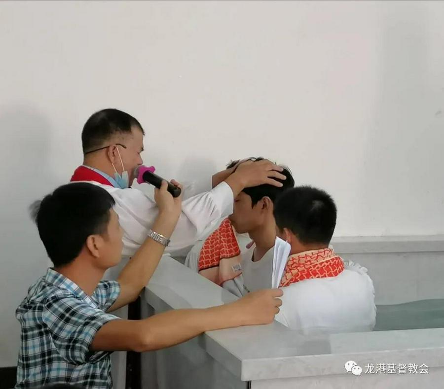 施洗证道卢成未牧师,施洗主礼肖庆好长老,襄礼何经强、温在永、潘其紫长老、谢德阔主任等。