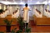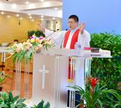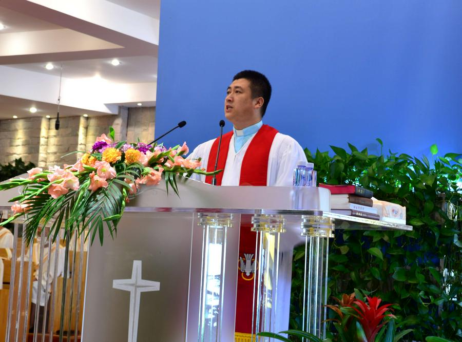 在圣乐中,万世福牧师身着洁白的圣服登上圣台,问候久违的弟兄姊妹主内平安,然后带领会众诵读新约圣经路加福音十九章的经文,以《寻找拯救的撒该》为讲章主题为主证道。他劝勉信徒像撒该一样,立即执行主耶稣的命令,欢欢喜喜的接待主耶稣。