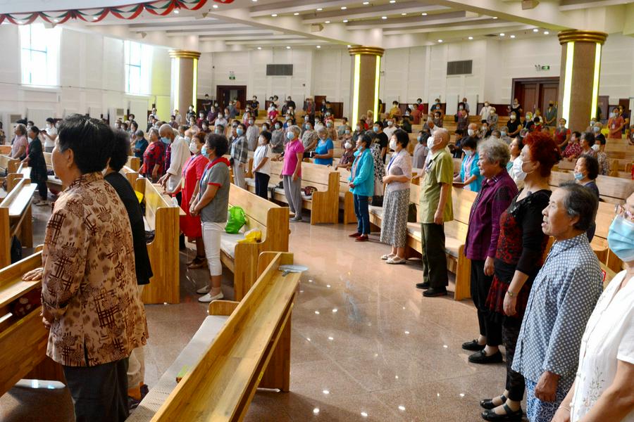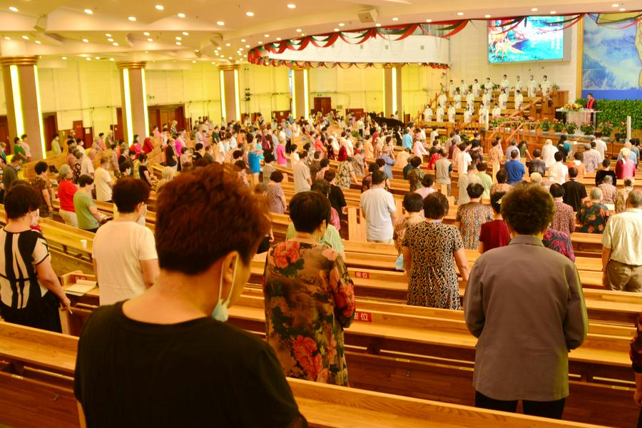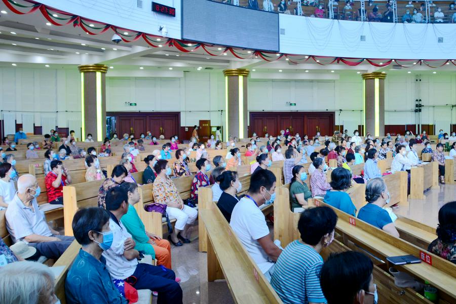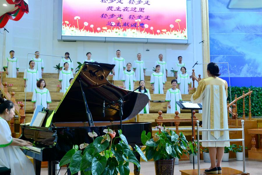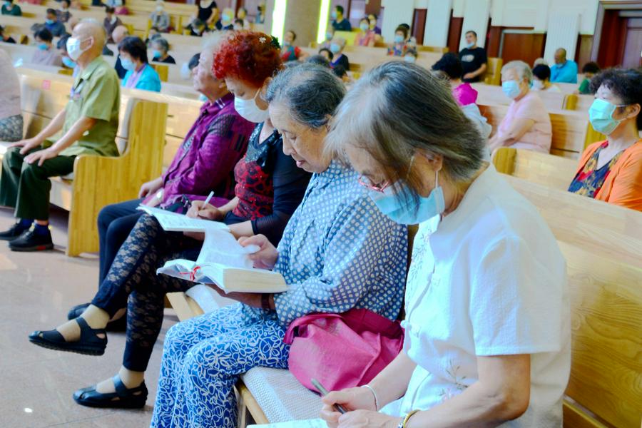一位和我熟悉的教会同工告诉我,他们测温、登记等服务的弟兄姊妹,有的早晨不到六点钟就到教堂来了。参加聚会的会众也是早早就来到教堂依次排队,出示健康码、登记、测温,然后进入圣殿。现在主堂一楼已经座无虚席,没有座位了。她笑着对我说,请上三楼吧。