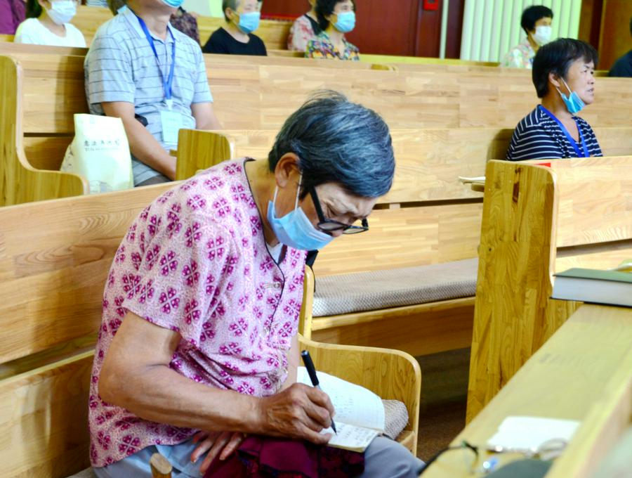 我自己感觉良好,结果晚了。到了三楼一看,还是出乎意料,嗨!几乎也要坐满了,再晚一点,也是没有座位了!同时我也看到,在听道期间,许多信徒不仅认真地读经,而且还在那里认真的做听道笔记。由此,我的又一个感觉就是:丰收堂的信徒真的爱主、爱真理、爱教会,因疫情期间暂停聚会的热情不减,对信仰的热情不减。一直持续燃烧、迸发!