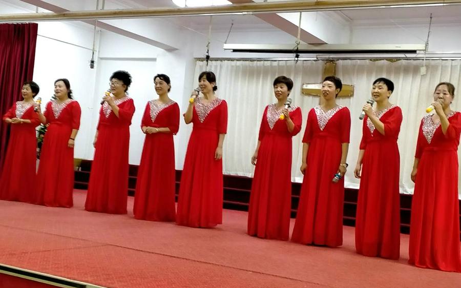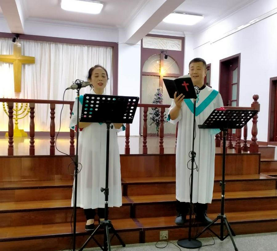 史爱军长老证道结束后,与袁明牧师共同走上台前,带领信众共同讴歌赞美三一真神。之后,教会举行了庆祝献堂感恩赞美会。教堂的弟兄姊妹身着盛装,把精心预备的节目载歌载舞献给三一的真神上帝。这是在疫情之后复堂后的首次赞美会。会场掌声响起来,荣耀归于神。