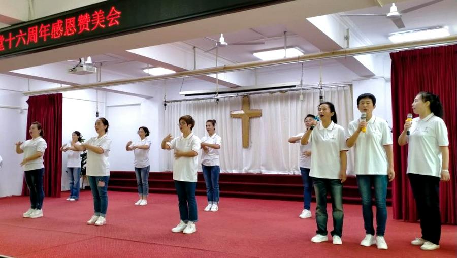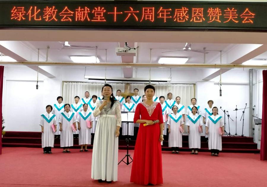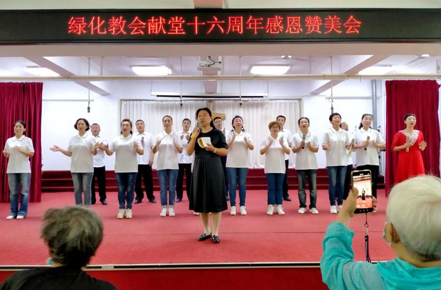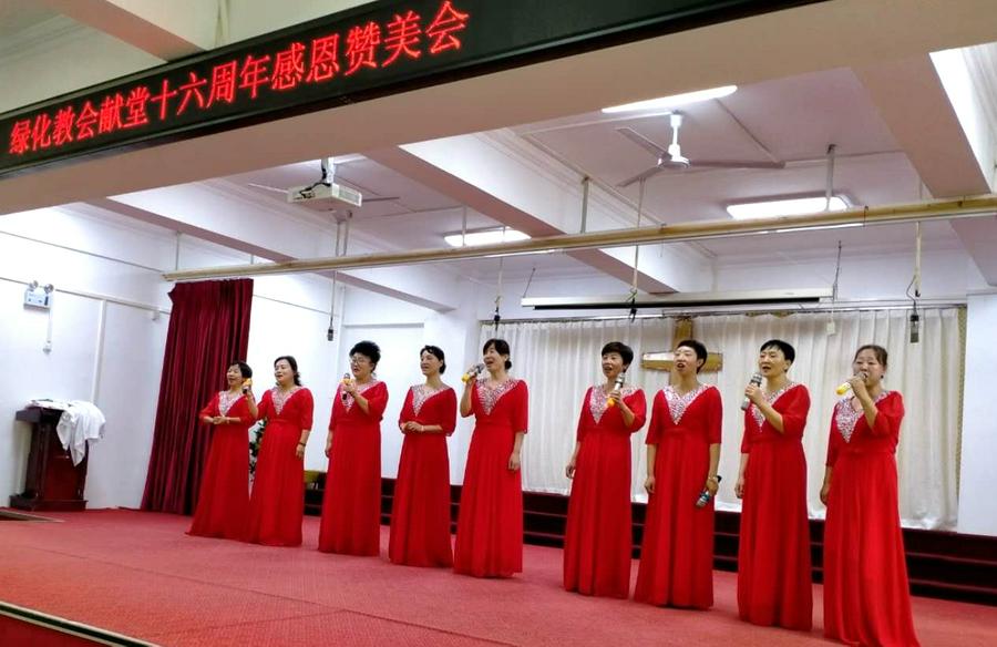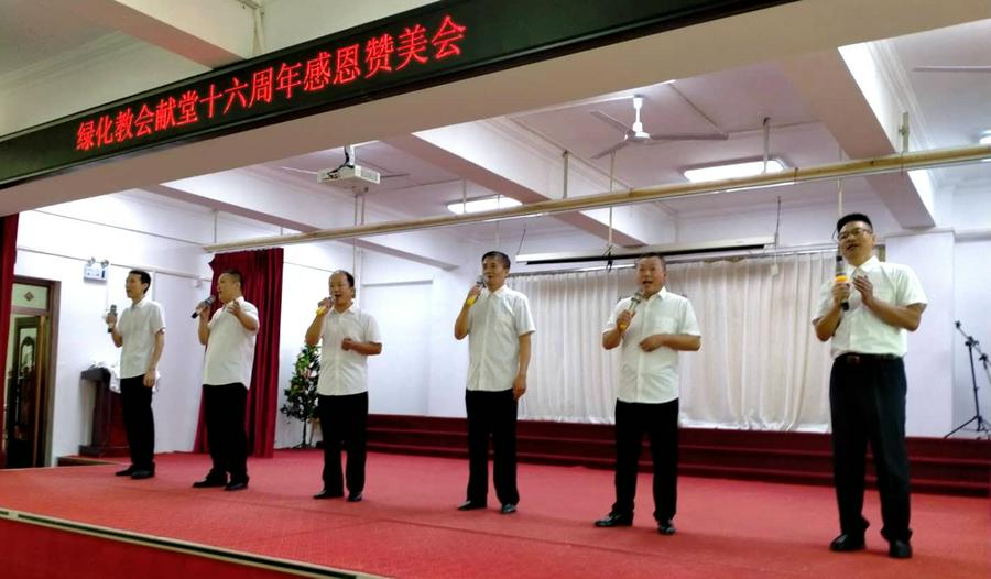 在这九月的金秋季节,在已经开始收获的时刻,在这会众期盼欢欣的好日子里,绿化堂举行献堂十六周年感恩赞美会。