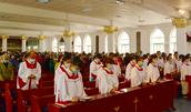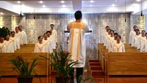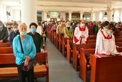 笔者今天从教堂的主堂看,已经坐满了;在二楼的副堂也是如此。德发长老说,有时候人员实在坐满了,还要开放主堂外部的附属房间供前来聚会的信徒来听道。