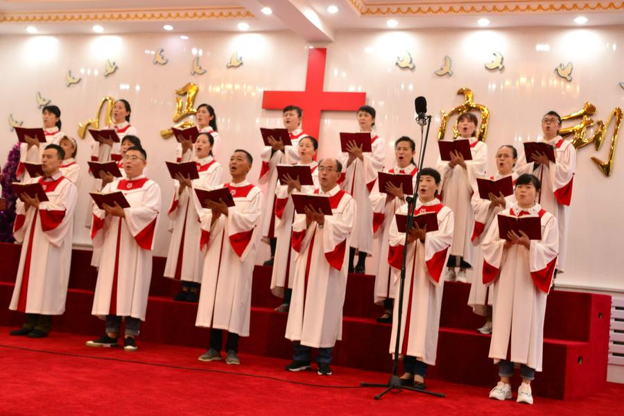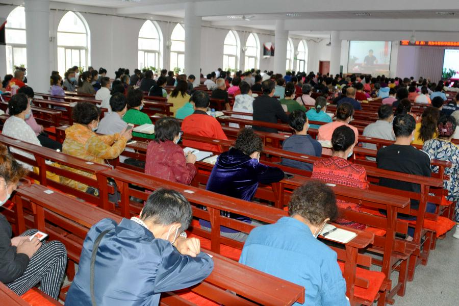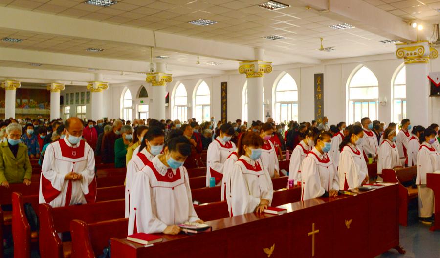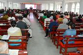 远远望见教堂的十字架高高耸立。一年多没有来了,心中充满亲切感。在教堂的正门,一眼就看见教会负责人王德发长老带领教牧同工迎接前来聚会的弟兄姊妹。