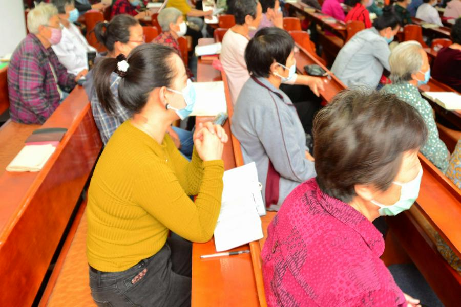 聚会结束后,笔者和一位马姊妹边走边谈。她是基督家庭,老父亲是信徒,85岁时归天家。她退休后,就开始在教会服侍:在追思班、在服务组都做过。现在是立山一个有200多人的“片儿”(以社区划分的小组)的负责人。谈到追思班,笔者说,你们是教会最可爱的人,很辛苦。她说,不辛苦,这个工做了,就不能放弃。教会长老、牧师很关心我们,我们服侍也喜乐。现在马姊妹在教堂负责聚会时的测温事工,早晨五点多钟就要到教堂预备。她告诉笔者,长老、牧师和传道人也和我们这些服务的同工一样,早早就来,这项工作马虎不得。她和其他同工一样,在主日上午结束后,就急急忙忙去菜市场买菜,把家务做好后,下午还得去教堂服务。
