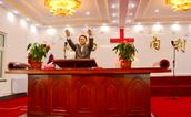 今天上午为主证道的是王国洋教士,他以“到如今耶和华都帮助我们”为题,宣讲了以斯拉记5-6章中的有关经文“不要拦阻 神殿的工作”,指出耶和华上帝拆毁也必重建复兴。