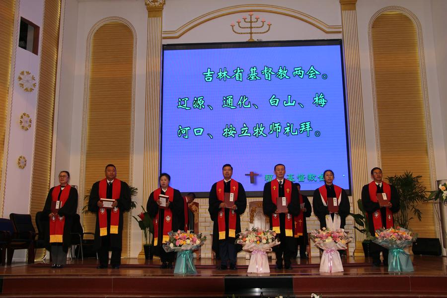 2020年9月24日上午,吉林省基督教两会在梅河口市福民基督教堂举行按立圣职典礼,来自辽源市、通化市、白山市和梅河口市的7位教牧同工被按立为牧师。梅河口市、辽源市等相关部门领导也到场祝贺。