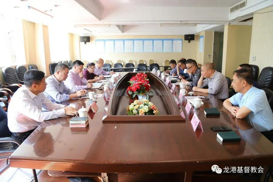2020年10月10日,温州市基督教两会主席朱礼斌牧师、会长吴圣理牧师一行来龙港市基督教两会访问并召开座谈会。