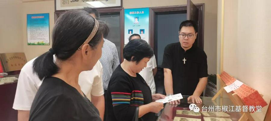 孔爱卿陪同刘福珍一行参观教堂建筑和内部装修及各种配套设施情况,参观了和谐园创建“五进宗教场所”宣传场所。台州市基督教三自爱国会主席徐世福牧师陪同刘牧师参观中国基督教三自爱国运动发起70周年暨中国基督教爱国文献藏品展,并详细介绍浙江基督教爱国主义教育基地和台州市基督教中国化实践研究基地。